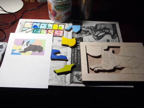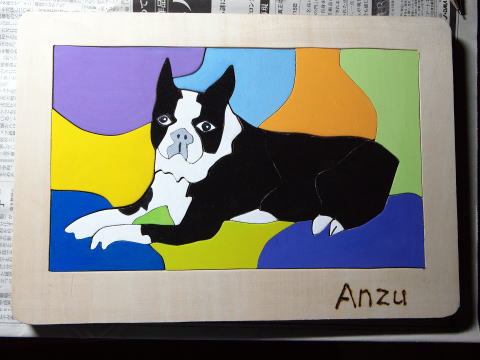 色塗り完成後、電熱ペンでAnzuと名前入れ