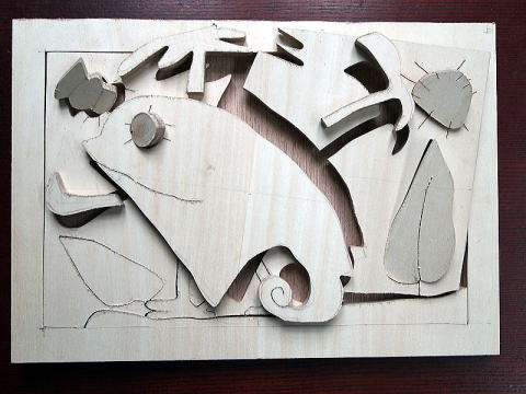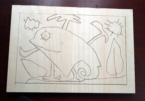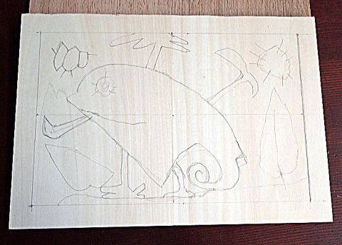 | 3.シナベニヤをカットし、鉛筆で下絵 |