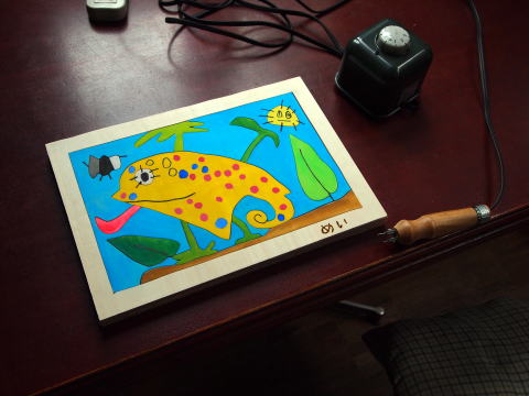 | 6.アクリル絵の具を使い、色づけ当初は薄い水彩にしようと思ってましたがアクリルの方が鮮やかであり、懸念された手触りも支障ないと感じました。 |