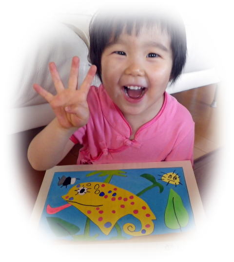 | たった今、届きましたよ〜!! ありがとうございました。 とってもとってもすてきです!!!!! めいと一緒にいるときに届いたので、 にやにやしてしまって隠しておけず、早めのBPでめいと一緒にあけました。 開けて出てきた組木を見て めいの頭の中は???でいっぱい。 「なんで、めいのカメレオン、パズルになったの?」 「だれがつくったの?」 「どこでそのおじちゃん(すいません、勝手におじちゃんと呼ばせて頂きました。 もしやお兄ちゃんでしょうか・・。)にたのんだの?」 満面の笑みで、質問攻めにあいました。 特に、ピンクがあちこちに使ってあることに興味を持っていました。 自分の描いた絵のコピーを見に行き(玄関近くの壁に飾っているので) 色の違いを見つけてみたり。 もちろん何度も何度もやっています。 「おかーさんには、難しいかもしれんよ。だってめいが描いたパズルだから」 とえらそうです(笑) お願いしてよかった〜!! とっても嬉しいプレゼントになりました。 お誕生日カードも、ラミネートかけていただいた絵も、ありがとうございました。 |