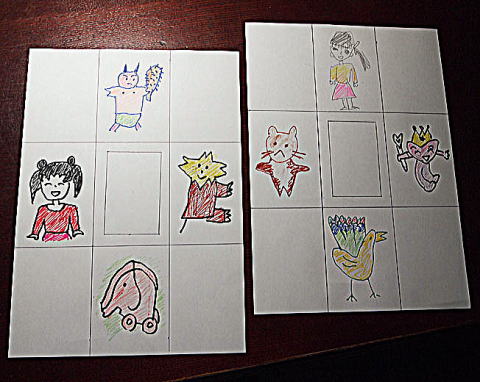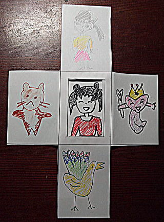 | それぞれの位置に8枚の絵を描きます。印刷した写真を貼るのもいいと思います。 |