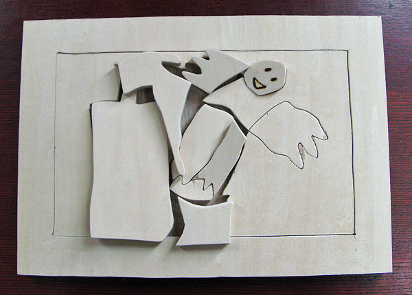 A4の大きさのシナベニヤをミシンソーでカットした白木状態